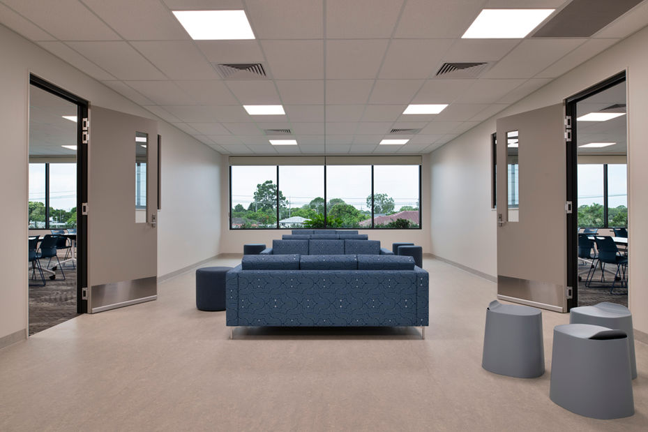 This elevated cold shell fitout is focused on the idea of providing student autonomy in a supportive environment, with a mix of formal and informal teaching spaces integrated with open recreation areas. The internal spaces are designed to promote inclusivity and student engagement within a backdrop of light and welcoming spaces that can be easily tailored to suit a variety student activities. Staff only spaces provide well-resourced and supportive infrastructure to ensure teaching and support staff can remain focused on providing students with the education they deserve.